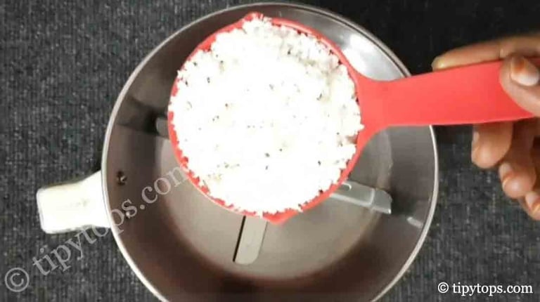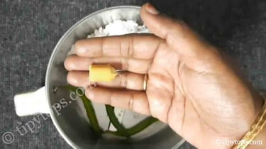 In a mixer jar, add Β½ cup grated coconut, 3β5 green chillies, and Β½ inch ginger.