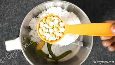 β cup roasted chana dal (chutney dal), Salt as per taste, and Β½ glass of water.