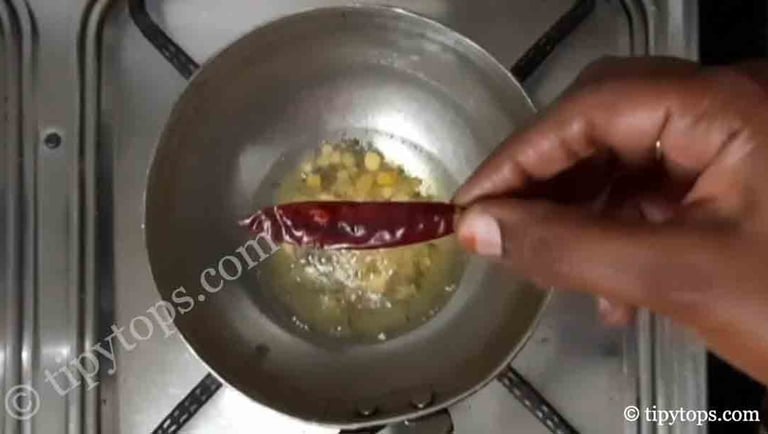add Β½ tsp mustard seeds, Β½ tsp urad dal, and Β½ tsp chana dal.