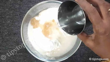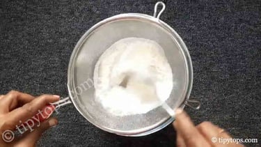 In a wide bowl, sieve 1Β½ cups of maida using a strainer.