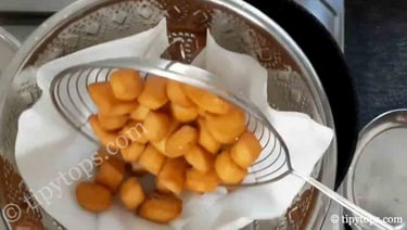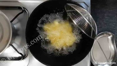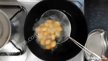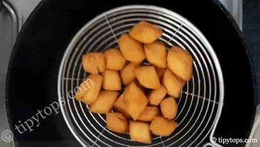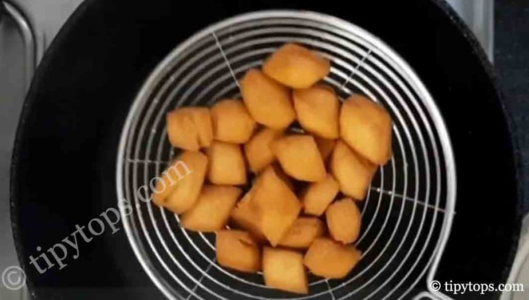 Once the biscuits turn golden and crispy, remove them from the oil.