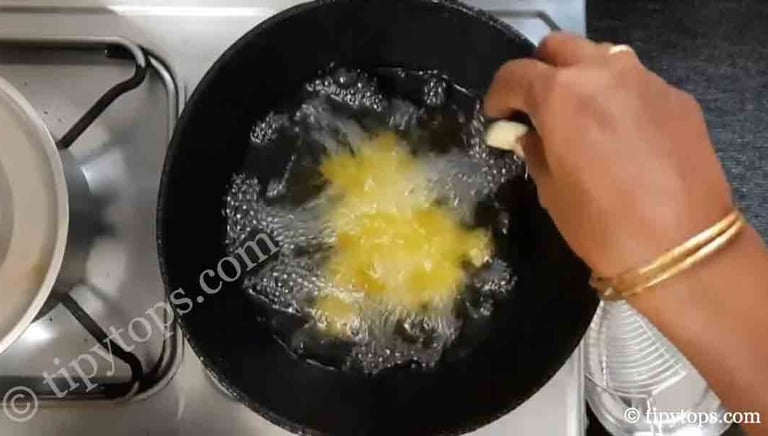 Once the oil is hot enough, gently drop the diamond pieces slowly.