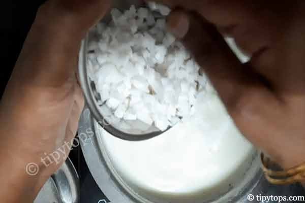 For this Tender Coconut Kheer recipe, full-cream milk is used.