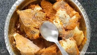 Once the fish is well coated with masala and properly marinated, it is ready for freezing.