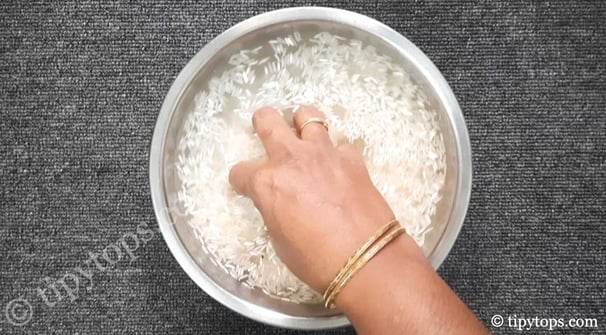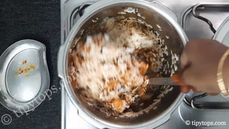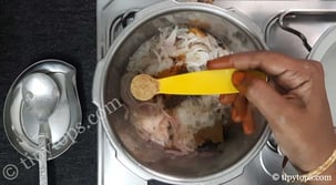 Once the vapour is released from the whistling nozzle put on the weight and cook the rice