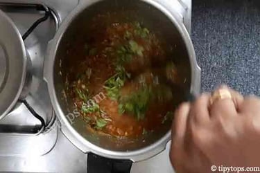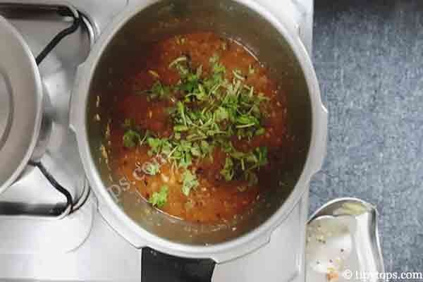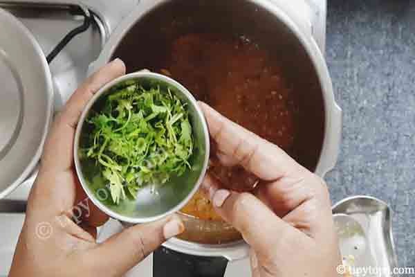 When the pressure goes down, open the lid and garnish it with coriander leaves.