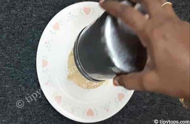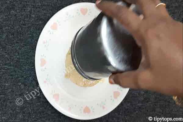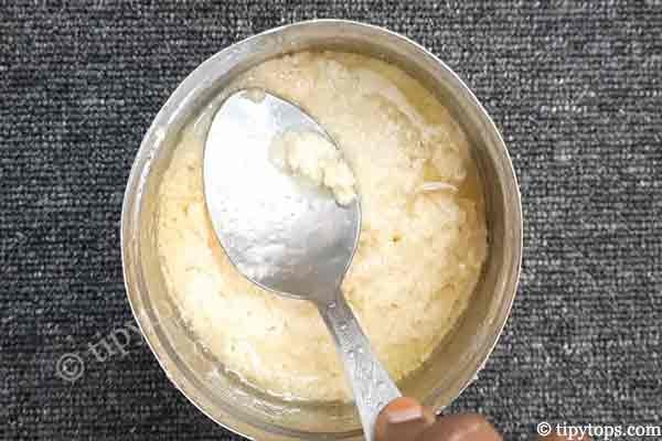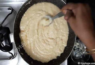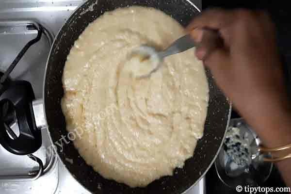 Once the stove is switched off, pour the prepared kova into the greased cylindrical vessel.