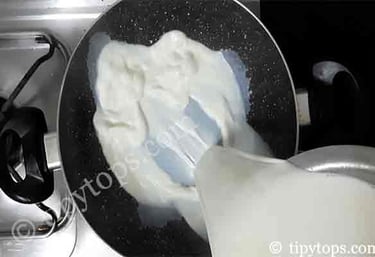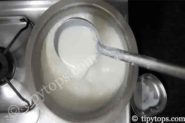 Caution: Thickened milk may splatter while cooking, so stir carefully to avoid burns.
