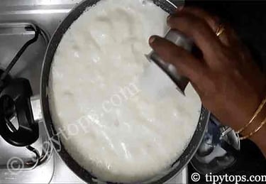 Note: Using a big vessel helps the milk boil faster and saves time. You can pour the milk directly into a kadai or non-stick pan, but make sure to stir continuously throughout the process.