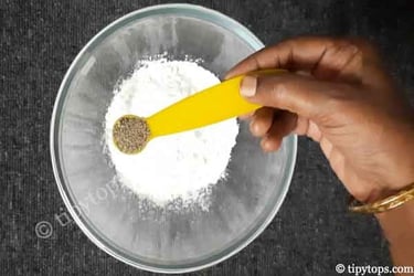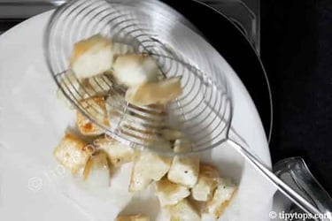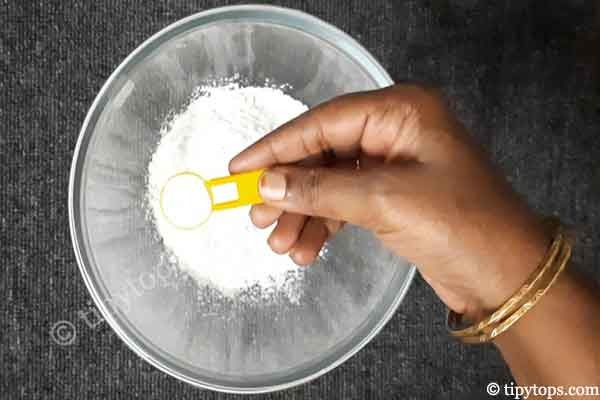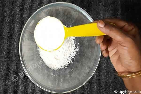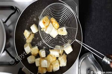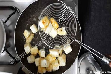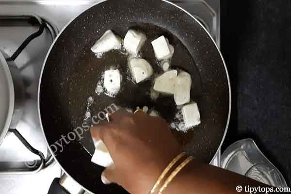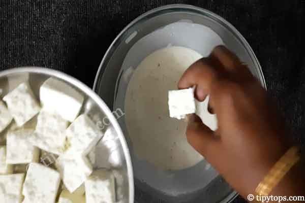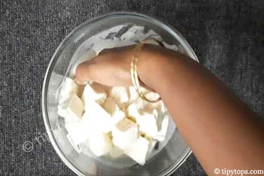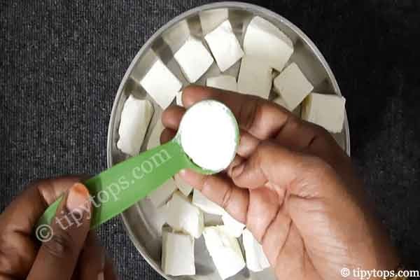 Sprinkle Β½ tbsp of corn flour on the top of the paneer cubes.
