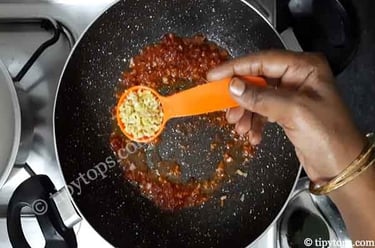 Add 1 tbsp of chopped garlic and 1 tbsp of grounded red chilli paste