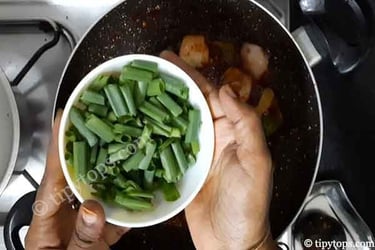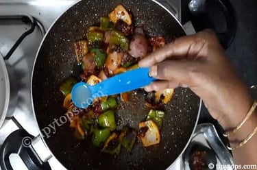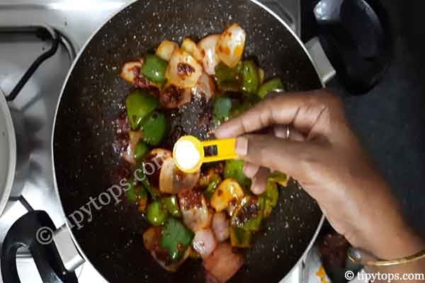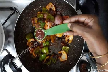 Β½ tbsp of tomato ketchup and mix. One cup of spring onions.