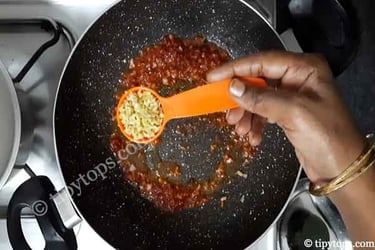 Turn the flame to medium-low. Cook till you can see the oil oozing out in the sides.