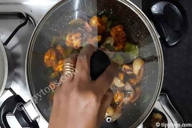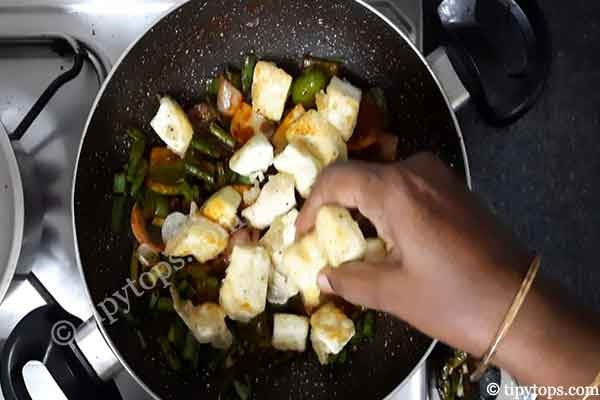 Mix it well gently, until all the paneer gets well coated and close with the lid.