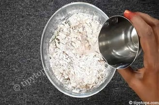 In a bowl, sieve ragi (nachni) 1 & Β½ cups rice flour Β½ cup with a strainer.