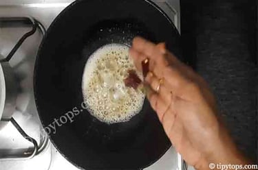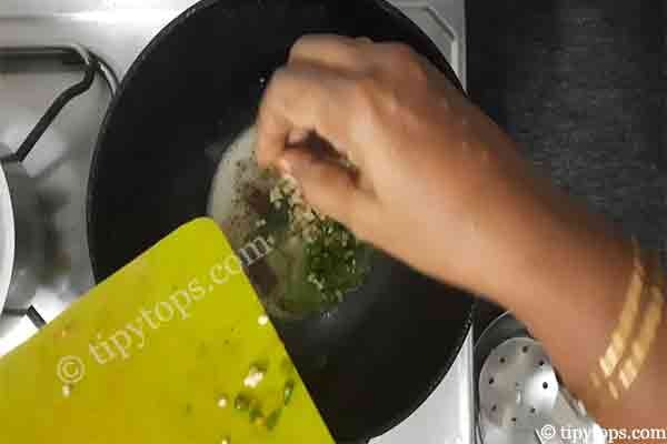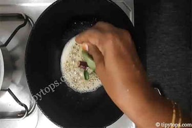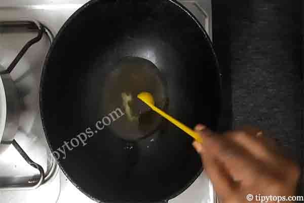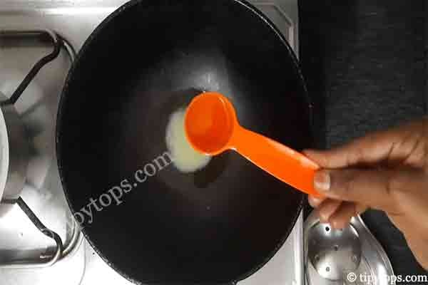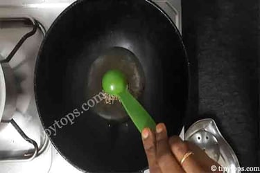 Heat a kadai and add 1 tablespoon ghee and 1 tablespoon oil.