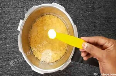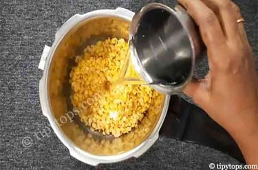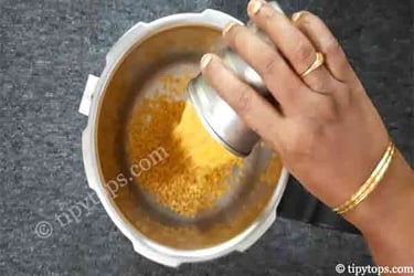 Take toor dal in a pressure cooker, wash it thoroughly, and soak it for 30 minutes.