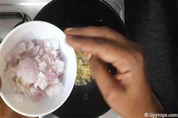 Add one chopped onion and fry until it turns soft and light golden.