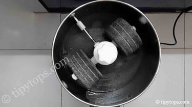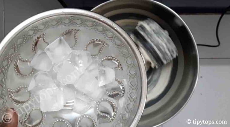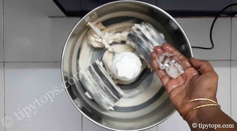 Use 3β4 ice cubes or 80 ml ice-cold water while grinding.