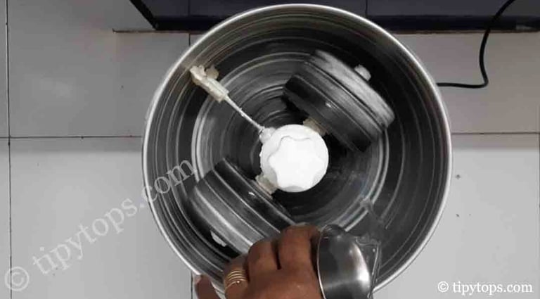 While grinding, sprinkle water 2β3 times only (use very little water).