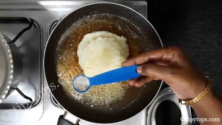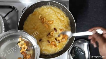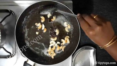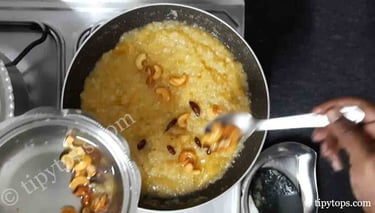 Once the Pongal reaches perfect consistency, add the roasted cashew nuts.