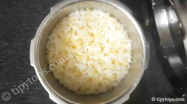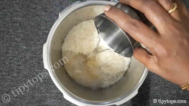 Add 4 cups (250 ml) of water, close the lid, and pressure cook for 3β5 whistles.