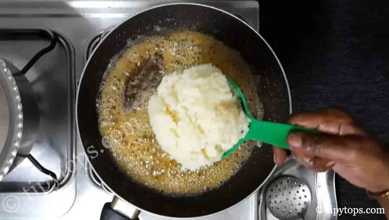 In the same pan, fry 1 tsp mustard seeds in the remaining ghee.