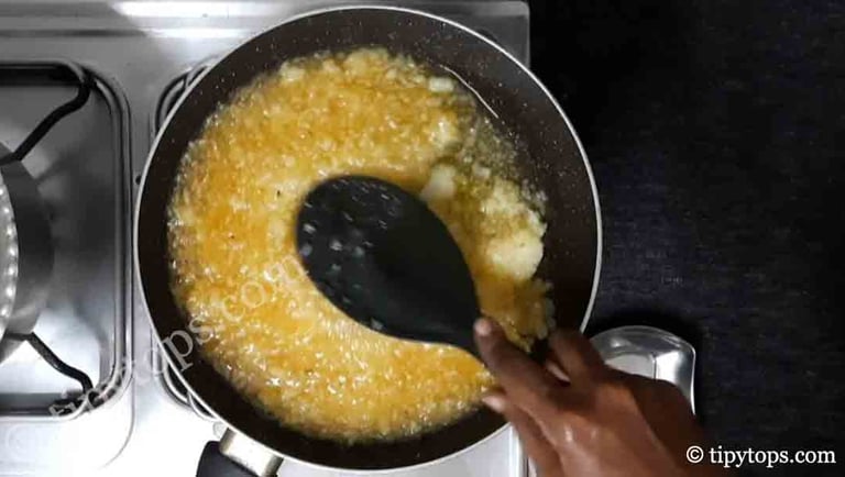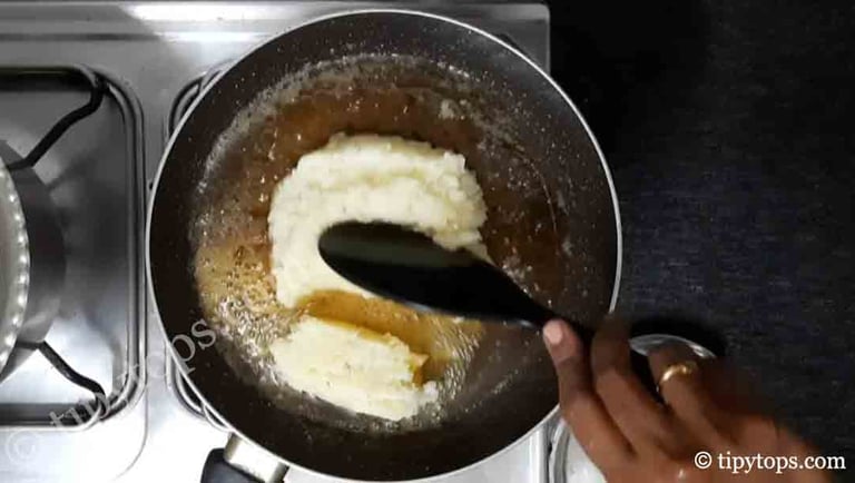 In the same pan, filter the prepared jaggery syrup and bring it to a boil.