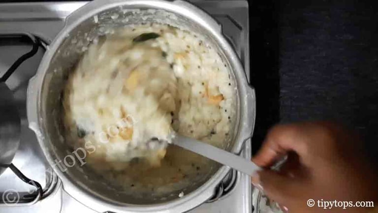Mix the dal and rice well, and mash gently to make it soft. Close the lid and keep aside.